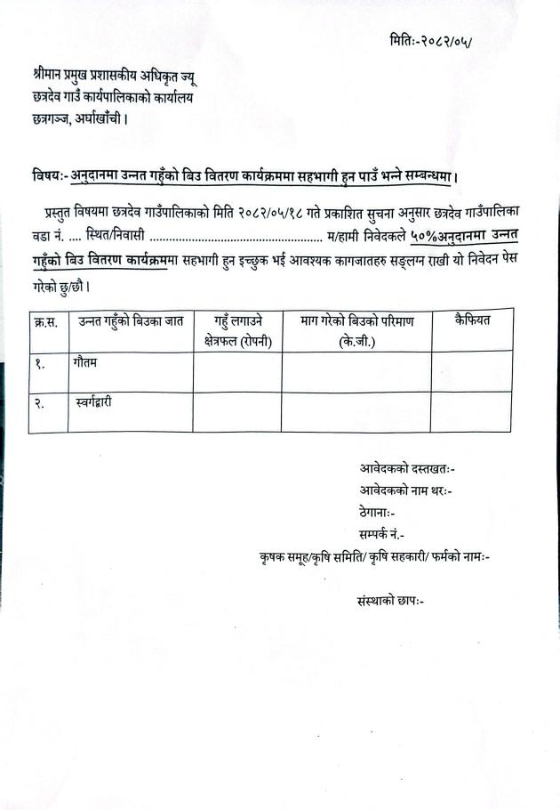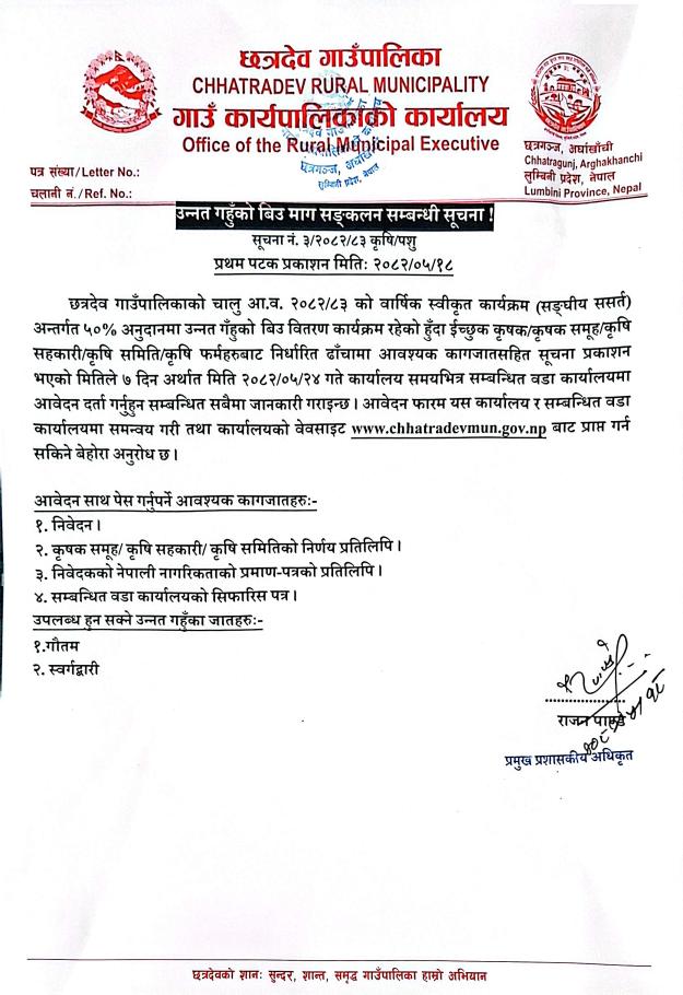 गहुँको बिउ माग सङ्कलन सम्बन्धी सूचना !