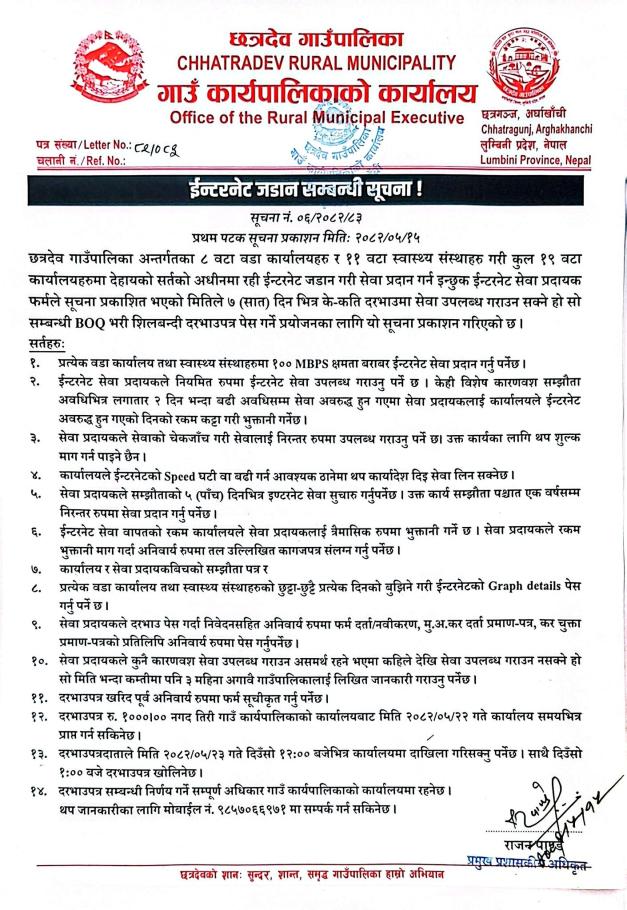 ईन्टरनेट जडान सम्बन्धी सूचना !