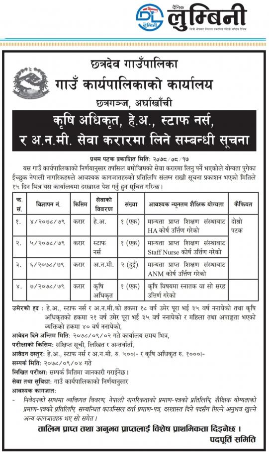 - आ.व. २०७६ आवास पुर्णनिर्माण तथा प्रवलिकरण संम्बन्धि छत्रदेव गाँउपालिकाको प्रोफाइल