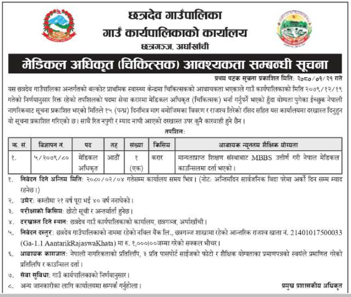 Home » मेडिकल अधिकृत (चिकित्सक) आवश्यकता सम्बन्धी सूचना