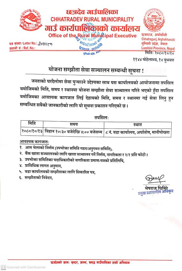 Home » योजना सम्झौता सेवा सम्बन्धी सूचना !