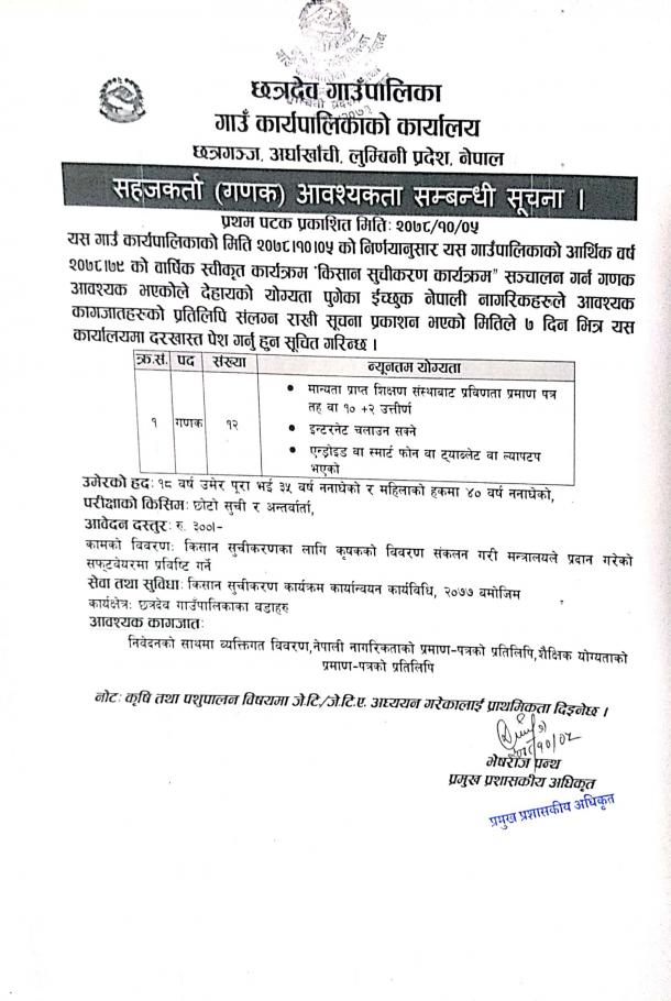 - आ.व. २०७६ आवास पुर्णनिर्माण तथा प्रवलिकरण संम्बन्धि छत्रदेव गाँउपालिकाको प्रोफाइल
