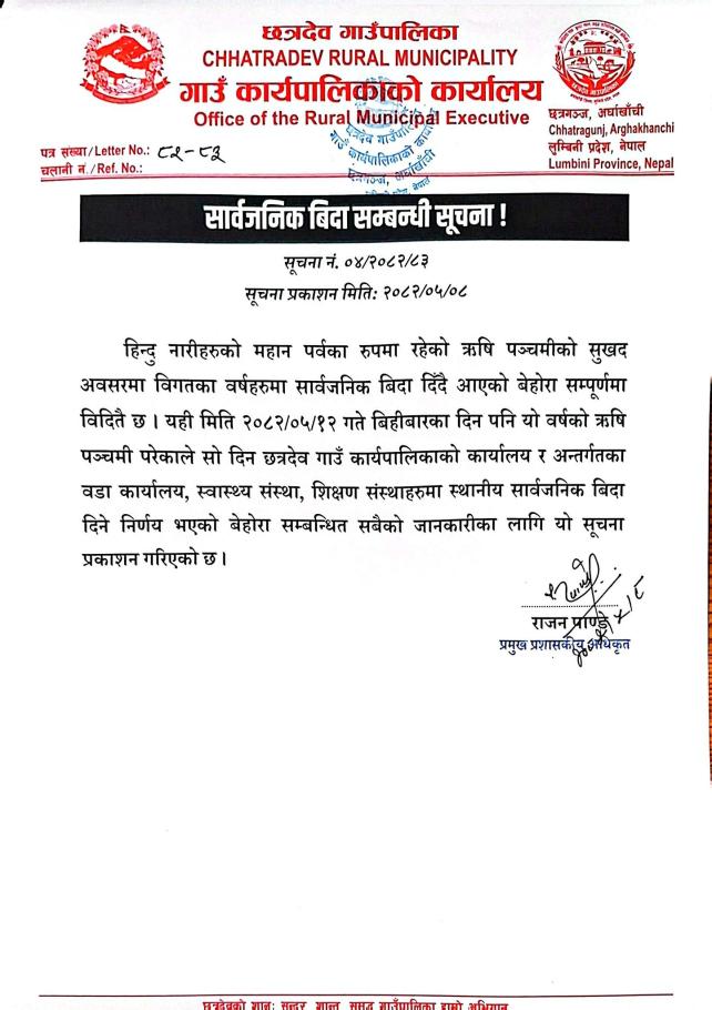 Home » सार्वजनिक बिदा सम्बन्धी सूचना !
