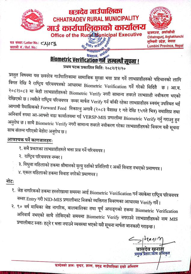 जिम्मेवार अधिकारीः- वडा अध्यक्ष सेवा दिने कार्यालयः- वडा कार्यालय सेवा शुल्कः- गाउंँपालिकाको आर्थिक ऐनले तोके बमोजिम